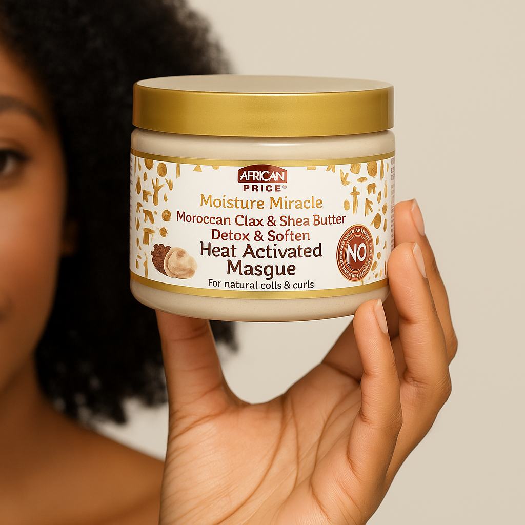 Say hello to healthy, hydrated curls! 💛 I'm loving the African Pride Moisture Miracle Moroccan Clay & Shea Butter Masque — it detoxes, softens, and brings my natural coils back to life! ✨ Heat-activated and packed with nourishing ingredients, it's my go-to for wash day wonders.
